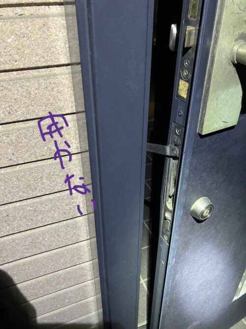 こちら遅い時間からの依頼 鍵が半分しか回らない?ドアーが開かない? 入れない?と言って電話を頂きました。築30年位だそうです。良く有るケースです(ガードロック) 月に7~8件くらいあります