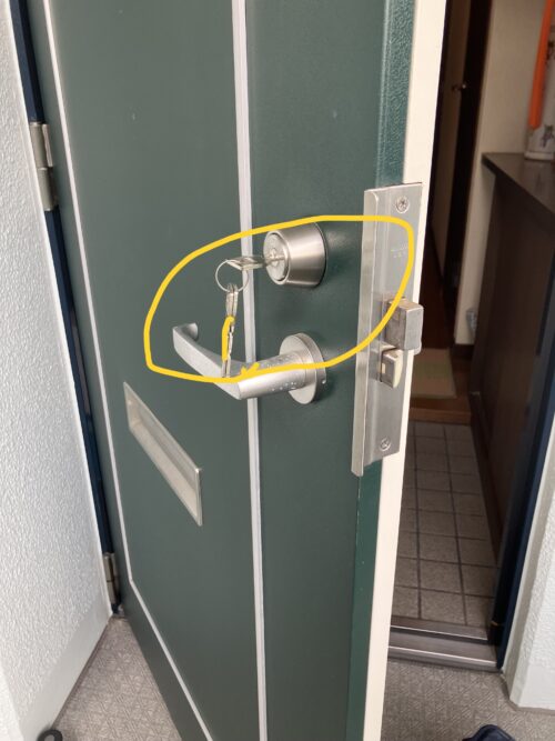 カギを無くして入れない?室内にも合鍵が無い交換してくださいと言って電話を頂きました。 エントランスは暗証番号で開けるのでマスタ合わせは必要ないとの事
